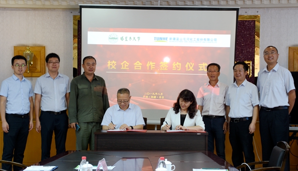Bwin必赢网址公司党委副书记、副总经理赖勇与塔里木大学副校长张利莉代表双方签订了校企合作协议书。塔里木大学党校办副主任于涛、生科院党支部书记白红进、副院长杜增智及屯河能源公司副总经理廖鹏、屯河聚酯公司副总经理徐东等相关人员参加了签约仪式。