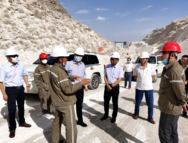 会谈结束后,双方领导就石灰石深度合作方案交换了意见,并对巴州矿业装置产能及石灰石的开采和规划,进行了实地考察。