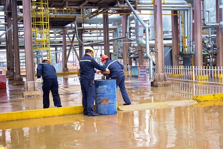 本次演练模拟公用工程车间2#热煤炉因出口阀门阀芯压盖处密封失效,导致高温导热油轻微泄漏的场景。在应急处置过程中,漏点扩大(≥300°高温导热油带压飞溅)并发生着火,公司应急救援组组织开展自救。