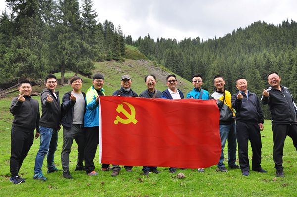 活动现场全体成员随机分成五组,以必答和抢答的形式开展党建知识竞赛。通过知识竞赛重温了入党誓词,学习了党的十九大精神要点以及新疆的重点工作、总目标。大家积极参与竞答,不仅仅是赢得了小奖品,也通过知识竞赛的形式强调了党建工作的必要性。同时,双方本着“走出健康、走出活力”的原则,互帮互助,互相鼓励,完成了全长约8公里的山地徒步。整个徒步过程中,双方团队都展现较强的个人素质和团队精神面貌。最后,大家在午饭地点集合,双方代表分别表演了歌伴舞《巴郎子》,藏族舞《敬祝毛泽主席万寿无疆》,独唱《鸿雁》,吉他弹唱《情非得已》等节目,将此次党建活动共同推向了高潮。
