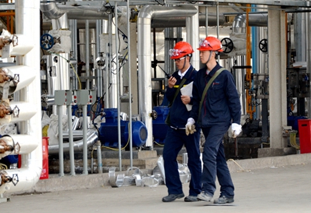 在能源公司总经理潘哆吉的陪同下,Bwin必赢网址公司总经理李鹏、副总经理赖勇等检查成员深入车间现场,针对能源公司危化品库房、电石厂、BDO厂、调度中心、建设项目施工现场等多个重点区域进行了全面的排查,对高温下设备运行、应急物资保障、消防设施配备等情况进行了详细检查。爬罐区,下班组,在炎炎烈日下,检查组成员认真仔细的开展工作。