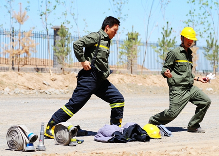 最后,安环办专业人员熟练演示了原地着装战斗服及两盘水带连接,让在场的员工不禁感叹道“这是经过无数次的练习才能做到的啊”。同时也感受到了在危急时刻,熟练的操作能为大家赢来更多的逃生机会。